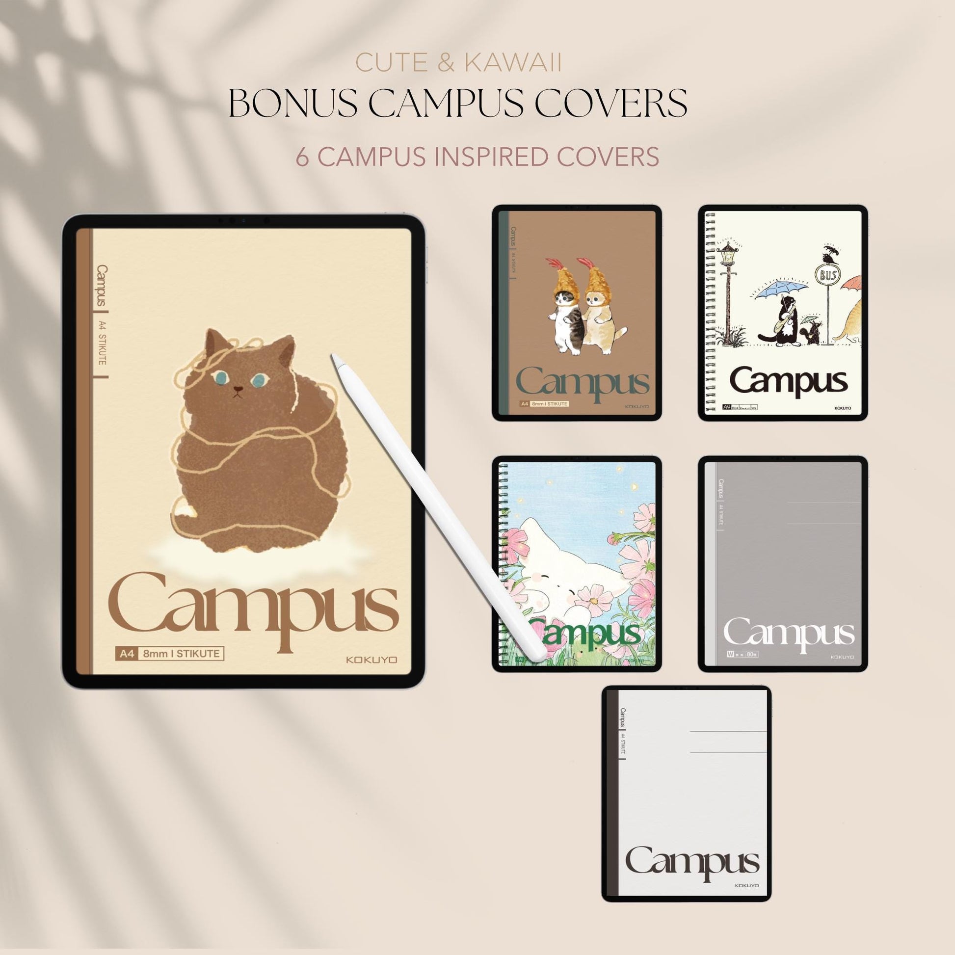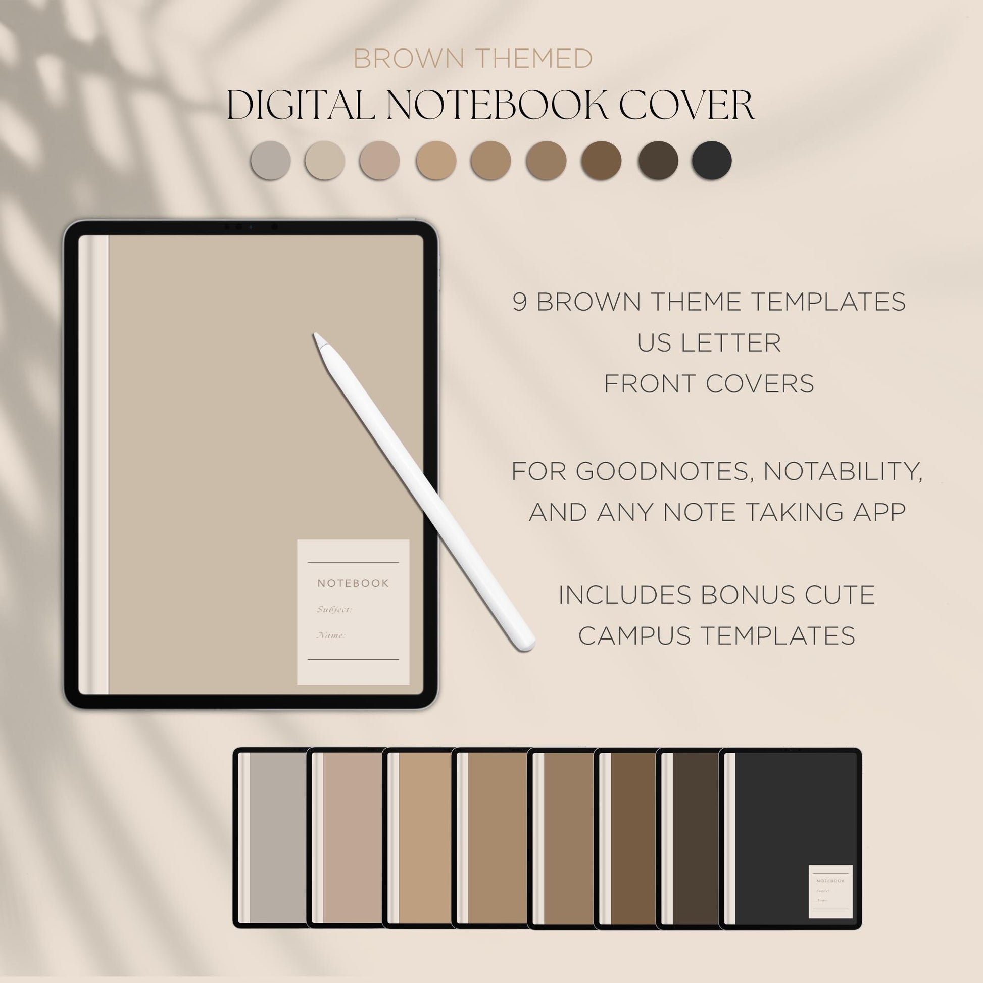 Digital Notebook Cover Brown and Kawaii Campus Theme for iPad and tablet | 17 options | GoodNotes, Notability, | Notes Cover Templates |